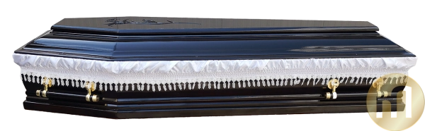 Sicriu SL18A -  Lemnul de tei, floarea sculptata pe capac,manerele din lemn premiumcu ornamente dar si calitatea finisajelor fac din acesta un sicriu usor de remarcat. Pretul sicriului include si echiparea acestuia cu elementele necesare sicriului: panza de fata, orarele, lenjeria sicriului, si perna. Crucea de lemn pastreaza culoarea sicriului si se inscriptioneaza cu numele persoanei inhumate.