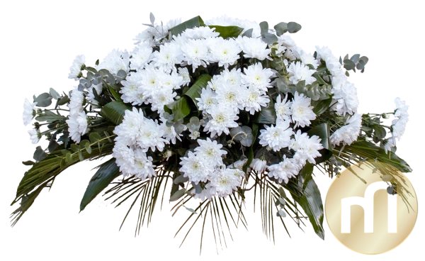 Datorita posibilitatii de fixare a buchetului funerar pe capacului sicriului, este singura recomandare de aranjament florar care se poate pastra alaturi de sicriu la momentul inhumarii.