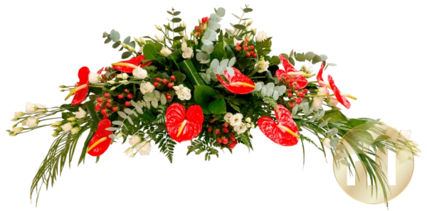 Datorita posibilitatii de fixare a buchetului funerar pe capacului sicriului, este singura recomandare de aranjament florar care se poate pastra alaturi de sicriu la momentul inhumarii.