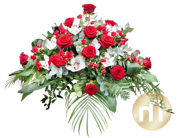 Datorita posibilitatii de fixare a buchetului funerar pe capacului sicriului, este singura recomandare de aranjament florar care se poate pastra alaturi de sicriu la momentul inhumarii.