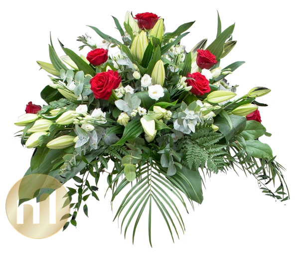 Datorita posibilitatii de fixare a buchetului funerar pe capacului sicriului, este singura recomandare de aranjament florar care se poate pastra alaturi de sicriu la momentul inhumarii.