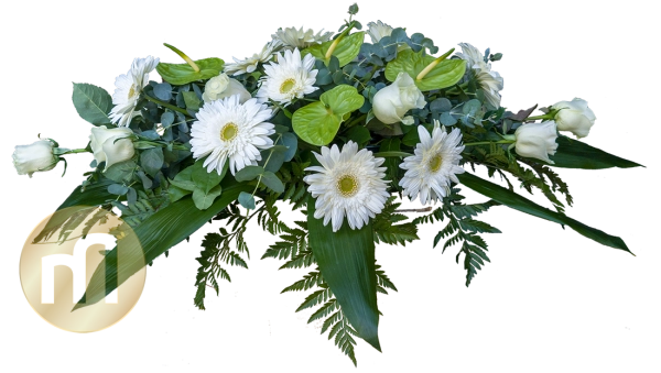 Datorita posibilitatii de fixare a buchetului funerar pe capacului sicriului, este singura recomandare de aranjament florar care se poate pastra alaturi de sicriu la momentul inhumarii.