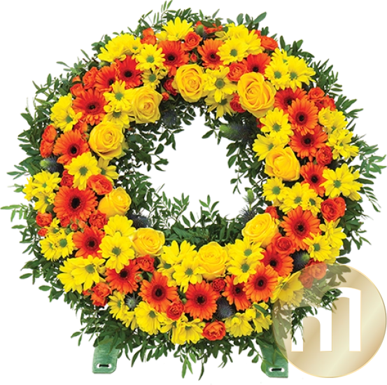 - Flori folosite: Minigerbera portocalie 20, Crizantema galbena 10 fire, Trandafir galben 10 fire, Minirosa 10 fire