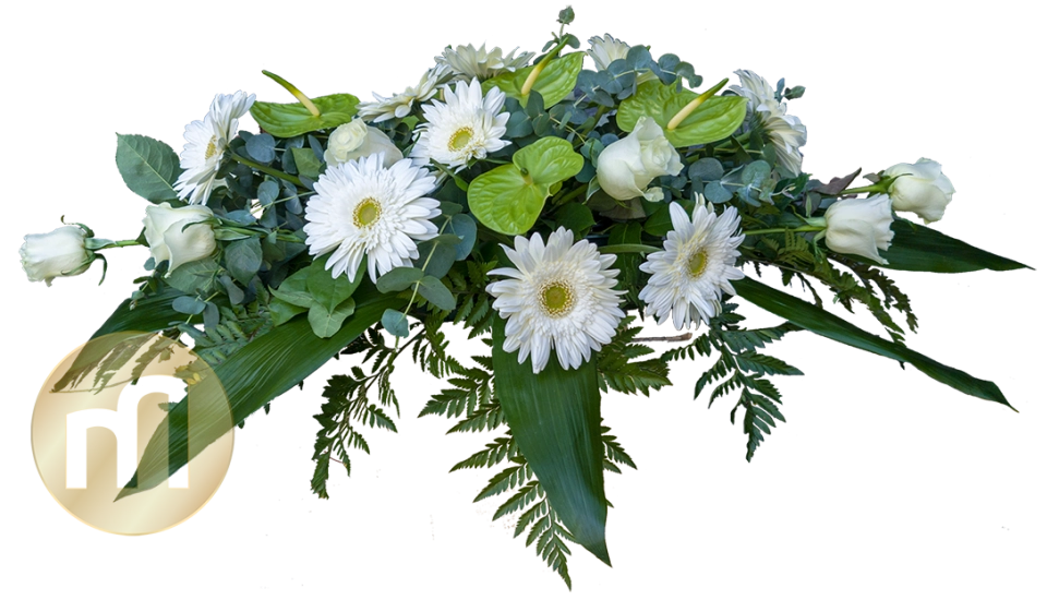 - Flori folosite:Anthurium verde-6 , Gerbera alba-6, Trandafiri albi-10,