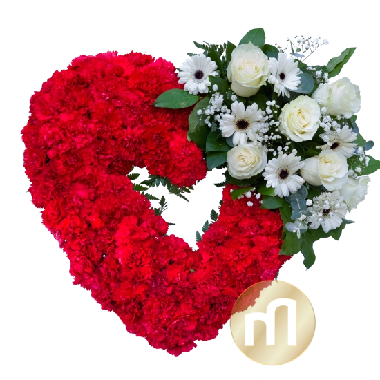 - Flori folosite: Garoafe rosii - 75, Trandafiri albi- 6, Gerbera alba- 6