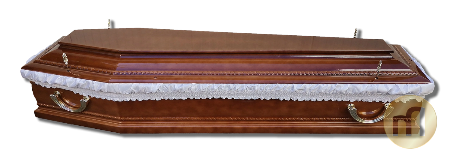 Sicriul E07 – un sicriu reusit cu o cromatica luminoasa si un finisaj lucios sicriul are sculptat discret un model geometric. Sicriul are un pret mic dar beneficiaza de finisaje calitative. Are in componenta sa toate acc...