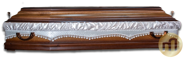 SICRIUL P24 – Un sicriu cu un finisaj impecabil, in 2 culori ce se imbina perfect. Facut din lemn de stejar si cu o lenjerie aparte, acesta se diferentiaza de celelalte sicrie.