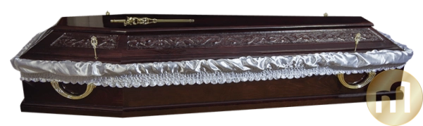 Sicriul SP11, cu o nuanta grena, este solicitat datorita pretului mic si a modelului acestuia. Accesoriile prezente la acest sicriu: 4 manere si 1 crucifix asezat pe capac, il recomanda familiilor care doresc sa opteze pentru un sicriu la un pret accesibil, necesar unei inmormantari traditionale. Sicriul are sculptat pe capac un model floral si este echipat cu toate elementele pentru o inhumare: lenjeria sicriului, perna, orarele, panza de fata si crucea scrisa cu numele persoanei decedate.