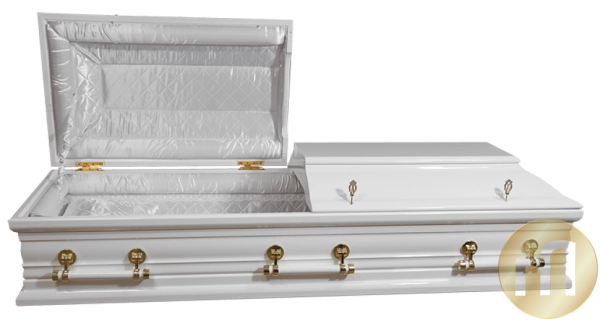 Sicriul SP22 President Alb este un model pentru ceremonii funerare deosebite. Sicriul are 2 capace care se deschid independent, astfel incat persoana decedata sa poata fi vegheata sau vizitata, fara a ridica ambele capace.